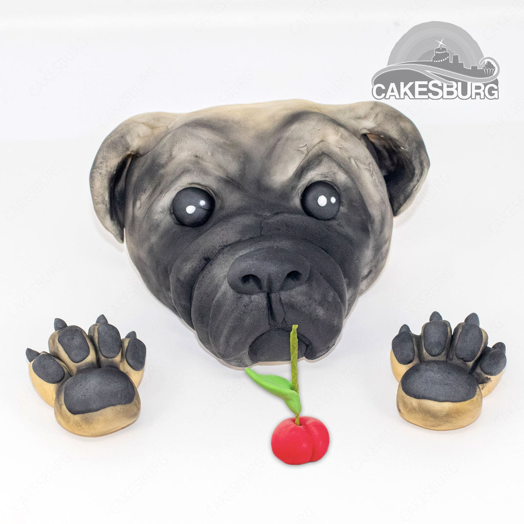 Package Contents: 1 x Edible Fondant Pug Head and Paws Cake Topper set. Please be aware that the cake is not included in the price and is for guideline purposes only.